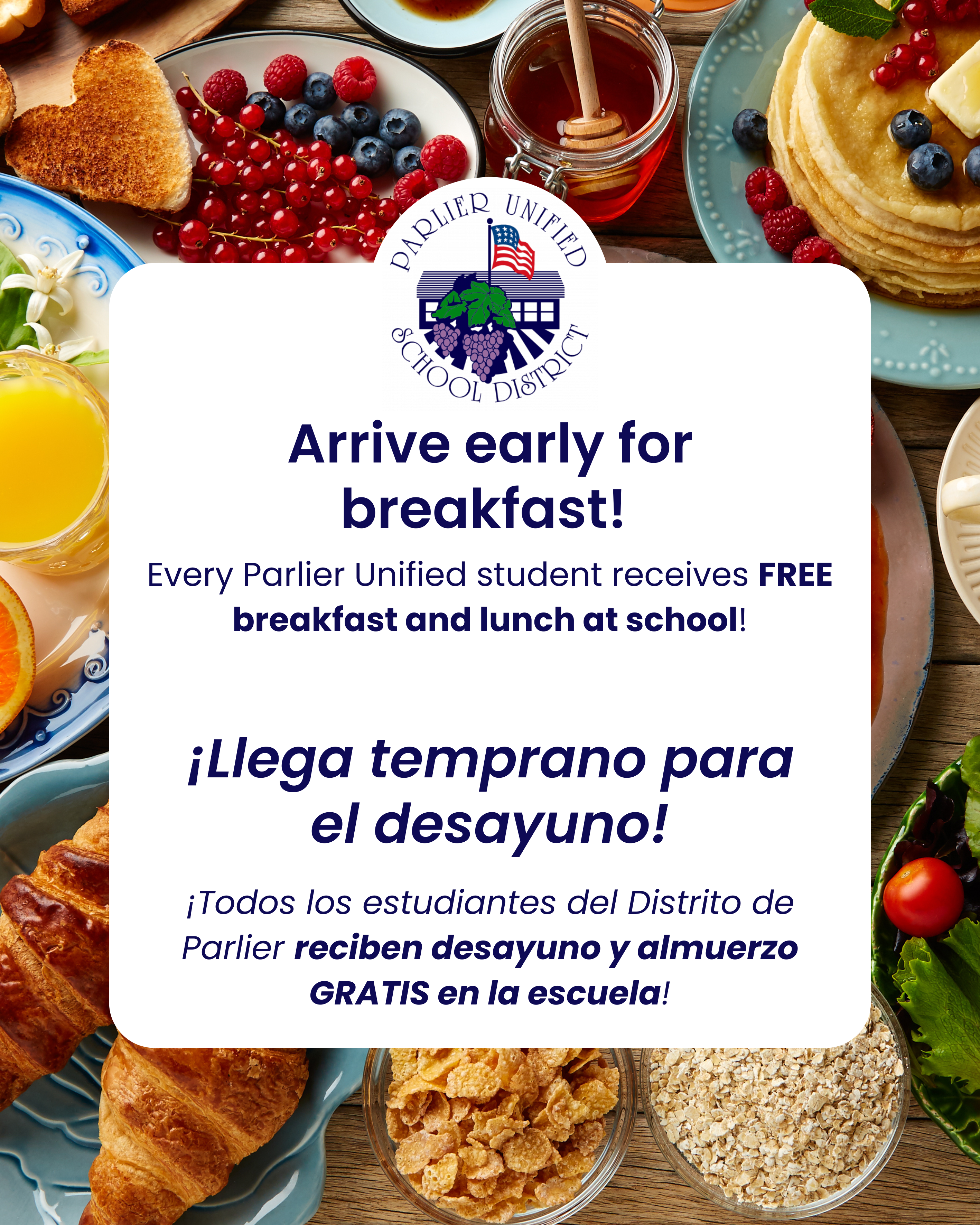 • Llega temprano para el desayuno – Un desayuno saludable ayuda a iniciar el día con energía y enfoque.